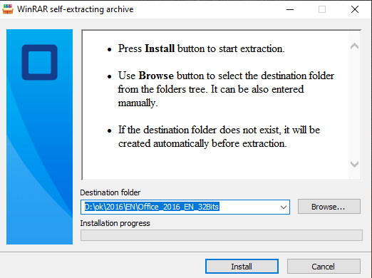 - Click on the “Install” button. This action unzips the application and will install your product.